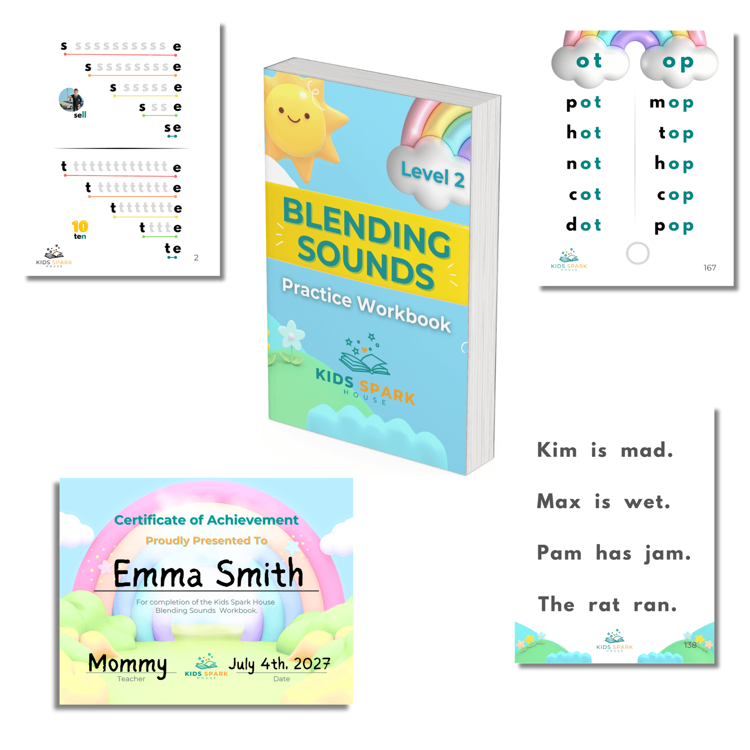 Once your child knows their sounds, this workbook teaches them how to smoothly blend letters into CVC words and simple sentences. With guided blending practice, word-building drills, and confidence-boosting exercises, your child learns how reading actually works.